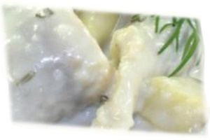 W drugim garnku stopić masło, dodać mleko, wmieszać po kropelce sok z cytryny, posolić i dobrze wymieszać. Ugotowane śledzie przełożyć na półmisek, zalać sosem i posypać posiekanym koperkiem. Podawać z pieczywem.